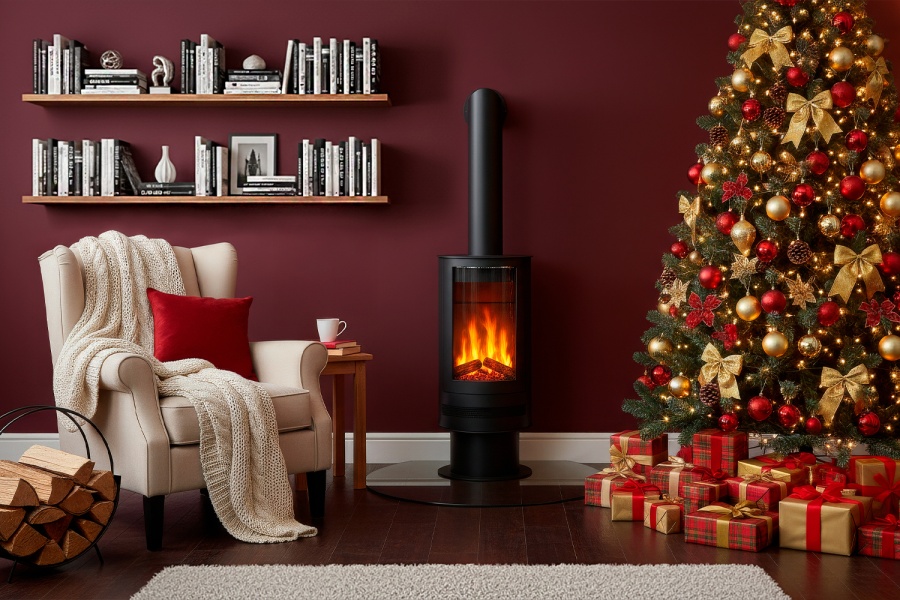 Ashurst Barrel Stove — это премиальная электрическая печь-камин. Модель цилиндрической формы дополняют две декоративные трубы для имитации дымохода. Установить печь максимально просто: достаточно поставить ее рядом с розеткой и подключить к электросети.